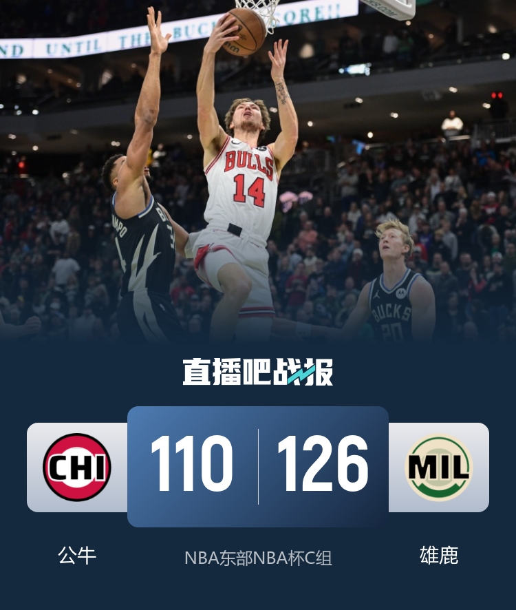 11月8日讯 NBA杯继续进行,东部两队强强对话,由雄鹿坐镇主场迎战公牛队,此前公牛6胜1负稳居东部第一,雄鹿则是5胜3负位列东部第五。