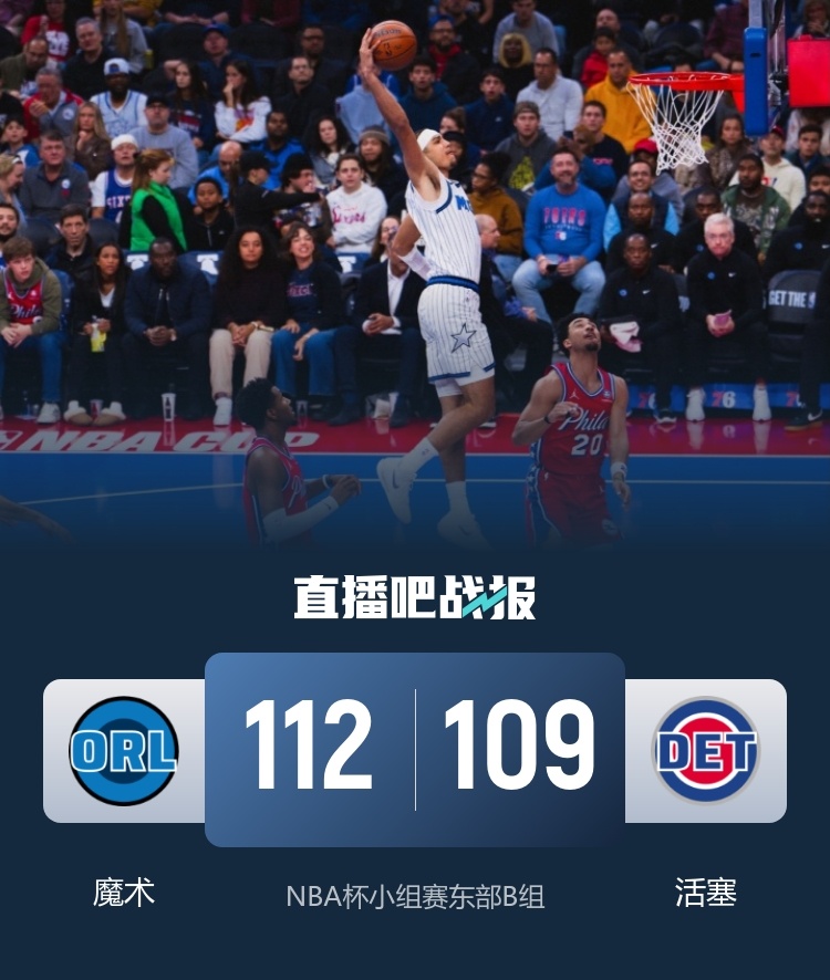 11月29日讯 NBA杯赛今日继续开打,东部B组的活塞坐镇主场迎战魔术。魔术目前3胜0负排在小组第一,活塞紧随其后排在第二。